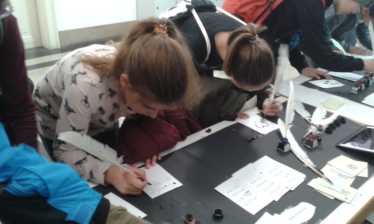Am 21. April fuhren wir mit unserer Klasse, der 1b, zur Jungen Uni. Wir – Sophia und Valentina – gingen zu den verschiedensten Stationen. Dabei lernten wir viele interessante Dinge, die wir vorher nicht kannten. Die Studenten waren nett und auch sehr intelligent. Es gab viele verschiedene Stationen und jede war für uns ein neues Erlebnis. Nach einiger Zeit sind wir in der Aula auf eine Station über Pflanzen gestoßen. Diese hat uns am BESTEN gefallen und wir waren dort eine halbe Stunde. Außerdem durften wir mit einer echten Gänsefeder schreiben. Das ist echt VIEL schwerer als es aussieht!