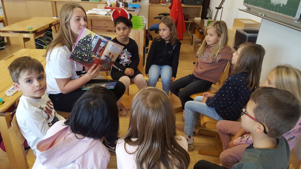 Unsere Schüler und Schülerinnen der 2./3./4. Klasse begeistern die Volksschüler/innen (1. u 3. Klasse) beim Vorlesekino in Thaur.